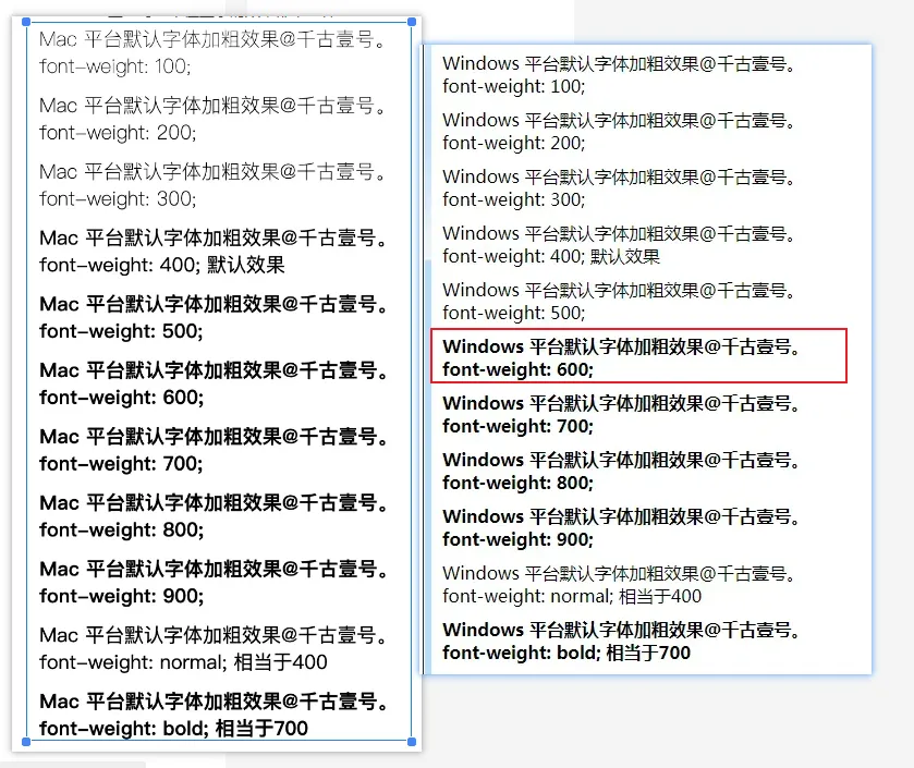 关于 css 字体 的一些学问 font-weight 属性在不同操作系统(常见win和mac)上的显示效果的不同