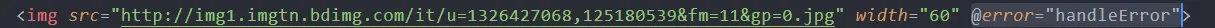 用 img标签的 **onerror(@error)事件 **解决图片的src地址访问不到报错(或者图片裂开)的问题